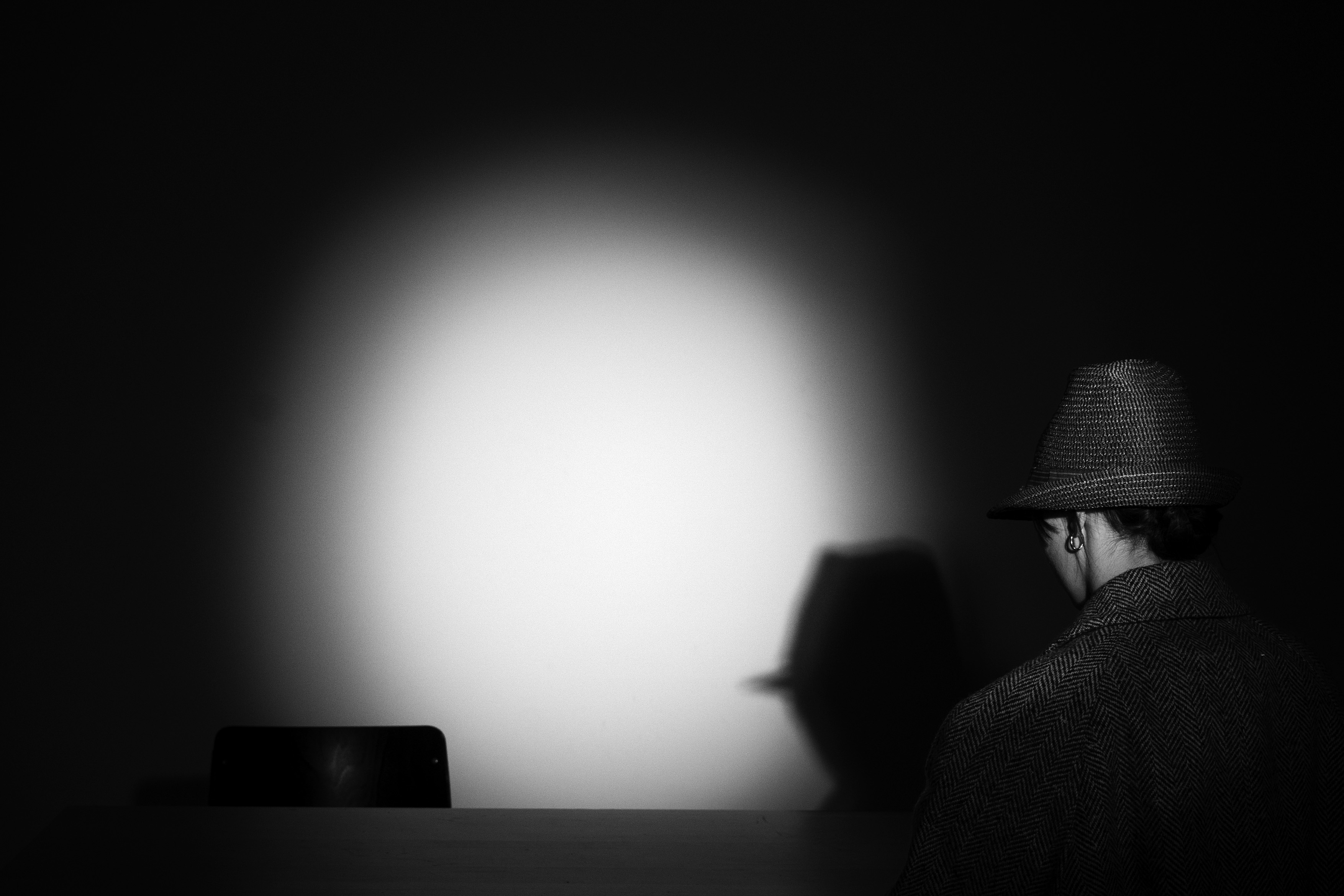 Ausgehend von einer selbst verfassten Geschichte entstand die Fotoserie Das Verhör als Inspiration galten die Film noir der 50er- und 60er-Jahre wie auch die klare Sprache von Alfred Hitchcock. Über sechs Bilder schlüpft eine einzelne Person in die Rolle von Kommissar und Angeklagter. Durch die Komposition und den Einsatz von Licht und Schatten werden die beiden Personen in denselben Raum gesetzt.