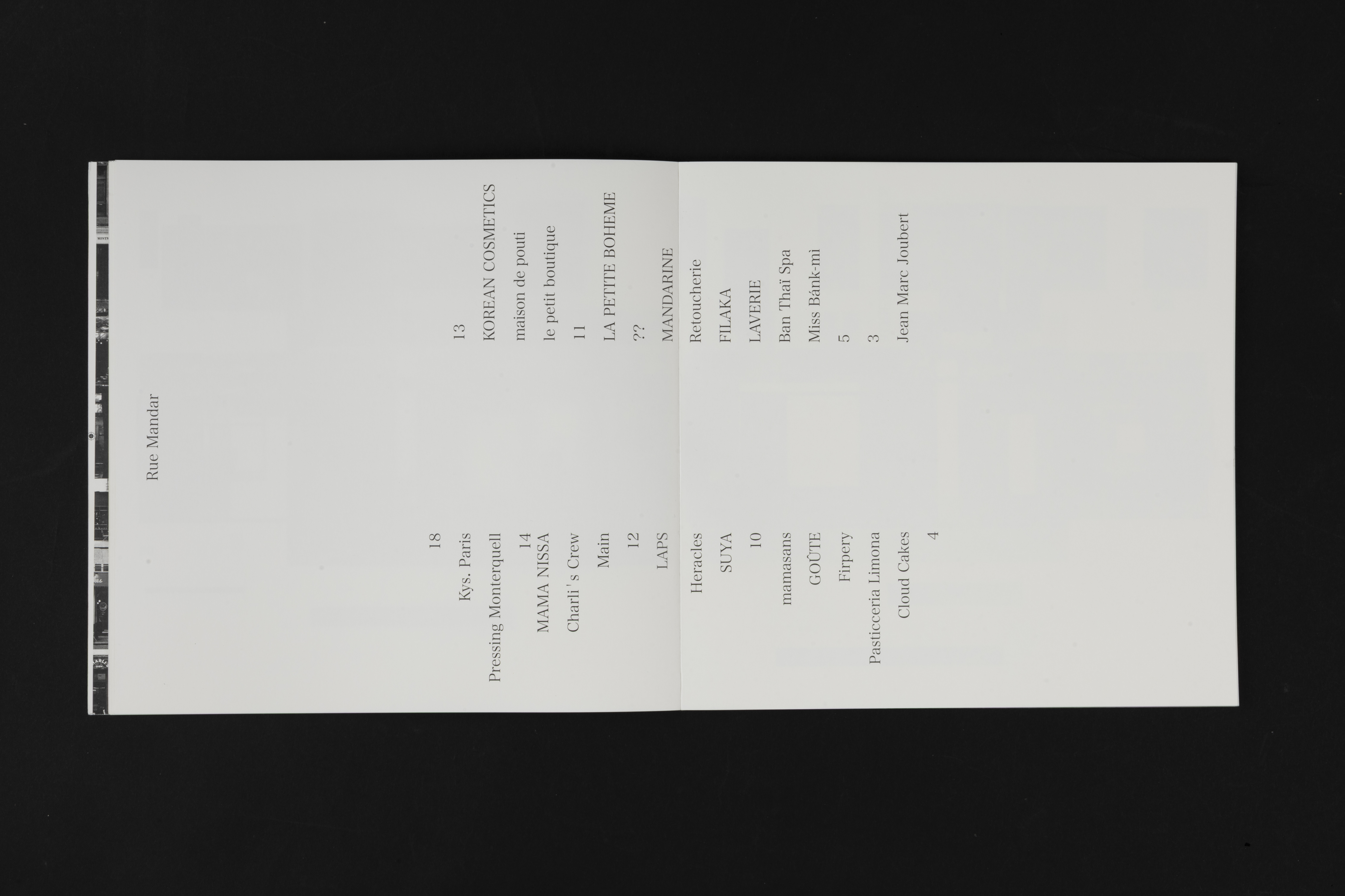 Im Layout werden Schaufenster in ihre Einzelteile zerlegt und neu angeordnet. Die einzelnen Fenster, Türen und Fassaden fügen sich über die Seiten zu einer Partitur zusammen. Das Buch fordert den Betrachter auf, seine Umgebung bewusster wahrzunehmen und die Stadt nicht nur als Kulisse zu sehen, sondern als Ort des Zusammenkommens und gemeinsamen Erleben.